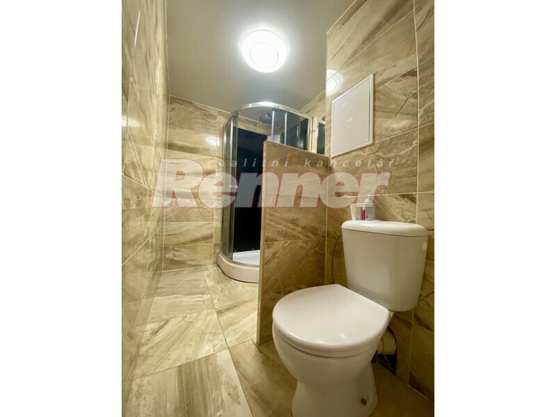 Kuchyňská linka je zánovní s elektrickým sporákem a digestoří Bytové jádro je obložené keramickým obkladem se sprchovým koutem, skřínkou s umyvadlem a toaletou. Podlahovou krytinou je plovoucí podlaha, v koupelně keramická dlažba. Okna jsou plastová.